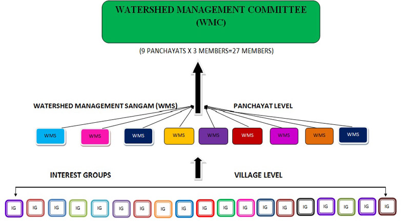 Orunginaintha Vivasayikal Neer Thidal Melanmai Sangam, –name of the CBO established across the beneficiaries of soil and water conservation program supported by BMZ abd KNH together, which is called Watershed Management Committee (WMC), an apex body, registered under Tamilnadu Societies Registration Act. This committee consists of 27 members including land owners, but also other inhabitants of the watershed and water management area, plus women and representatives of the Panchayati Raj Institution from nine local Watershed Management Sangam (WMS) functioning at panchayat level.